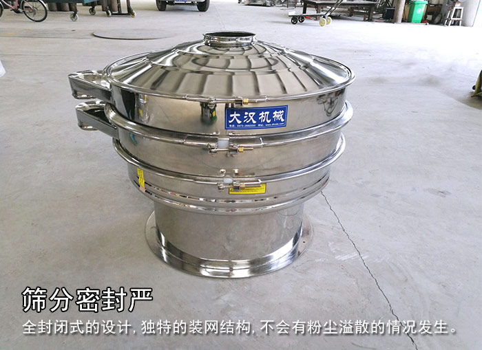 不銹鋼振動篩采用的是全封閉式的設計,具有著裝網結構,在篩分皂粉的過程中不會有粉塵溢散的情況發生,能夠保護環境,不會對人體和環境造成危害。
