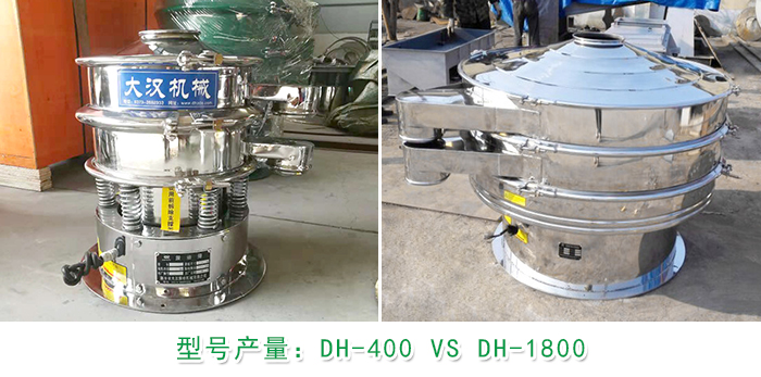 大產量選DH-1800型振動篩:篩分直徑為1720m/m,轉速1440r/min,功率為2.2kw,每小時處理量可達到800kg-1500kg。