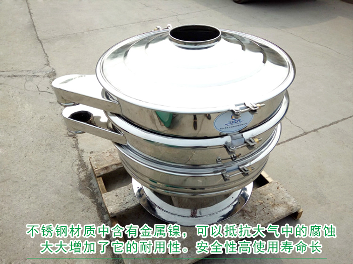 不銹鋼振動篩采用不銹鋼材質制作而成,不銹鋼材質不易生銹,防腐性能高,不銹鋼材質中含有金屬鎳,可以抵抗大氣中的腐蝕,大大增加了它的耐用性。安全性高使用壽命長