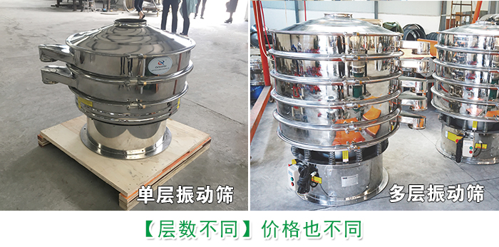 不銹鋼振動篩可安裝5層篩網一次性可以篩分出六種不同規格大小的大米,單層只能進行簡單的大米篩分過濾除雜工作,多層則可以滿足除雜、分級等不同規格大米的篩分,因為多層篩網在結構上比單層篩網要復雜,所以層數越多,它的價格就會越高。