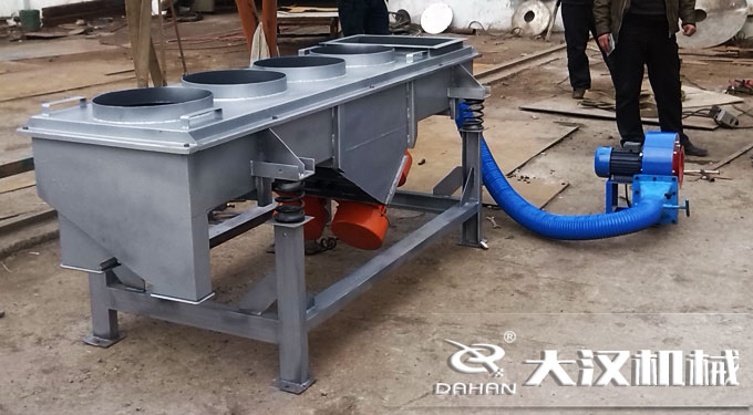 大漢機械在原有的基礎上加裝風機,可用于高溫度物料,在進行篩分的同時也可以進行散熱處理,防塵蓋上留有圓孔,目的也是幫助其更好的降溫,既有效的進行了防塵,也可以加快降溫的速度。