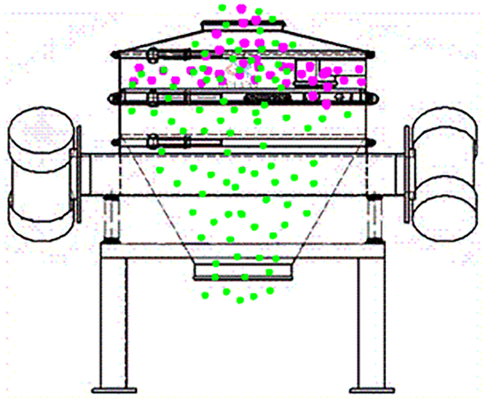 雙電機不銹鋼直排篩與物料接觸部分為304不銹鋼材質,支架為碳鋼材質,采用雙電機驅動使物料在篩面上產生渦旋運動,具有自動排料功能,用于粉體生產線工藝流程中的除雜,篩分作業。