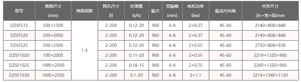 直線振動篩技術參數
