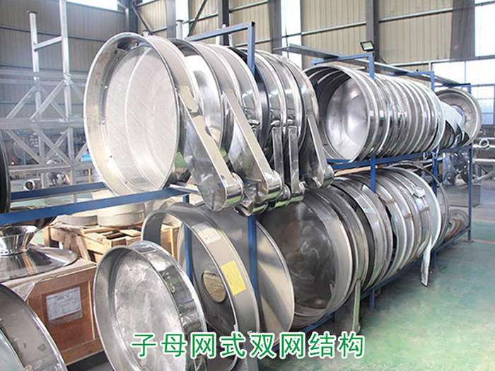 子母網雙網結構式網架比較適合堆積密度較大的物料和篩分網目數較高的物料,網架結構的優勢更換工作網比較快,工作網下的母網其骨架作用,支撐工作篩網,保證篩面的平整度,防止物料沖擊壓塌工作網,同時又防止篩板上的彈跳球撞擊工作網,把工作網撞破。
